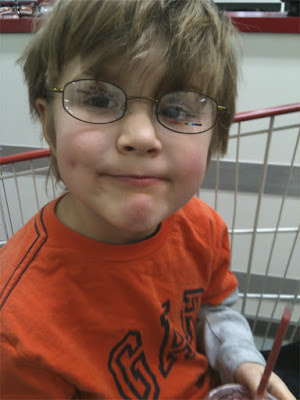 I, instead, fashioned a tiny little eye patch to make him look better (and to make Paige laugh).